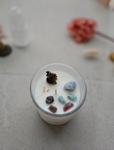 These unique soy wax crystal candles are extra special because of the carving you can find on it: we classically only have one version of each animal, and we chose them randomly.